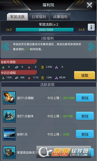 2、想要获得更高的福利,就要提升活跃等级,就需要玩家多捐献,攻击军团副本,军团商店购买物品和协防。