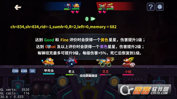 在《坦克大决战》中,老铁们命中敌人时射击的角度越高伤害也就越高评价越好,而评价从高到低总共分为五个等级分别为:Good、Fine、Great、Wonderful、Perfect,当达到不同评价时可以永久提升坦克的伤害,并且每级都会增加5%,最多可以提升9级,但是需要所有老铁们注意的是如果在本回合死亡,那么伤害就会恢复到1级。评价在Good和Fine之间可以收获黄色星星提高一级的伤害,评价在Great及以上可以获得紫色星星提高二级的伤害。所以在游戏中,就需要各位老铁们尽量打出高评价来提高自己的伤害。另外需要注意的是坦克在死亡时,怒气值会减半!减半!减半!重要的事情要说三遍!
