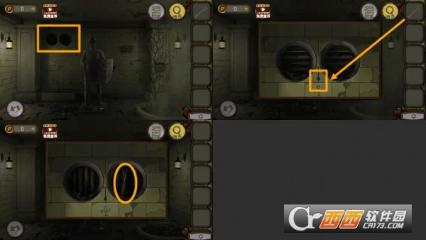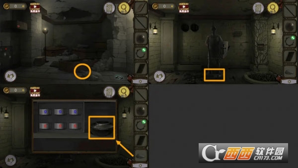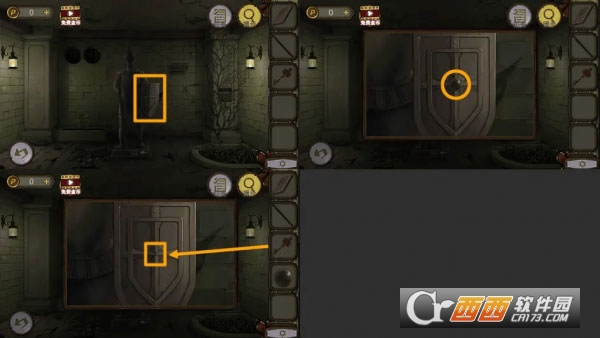 4、盾牌上拿到【金属圆片】,用拼图机关拿到的【钥匙】插入钥匙孔,拿到【十字架】。