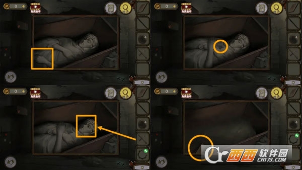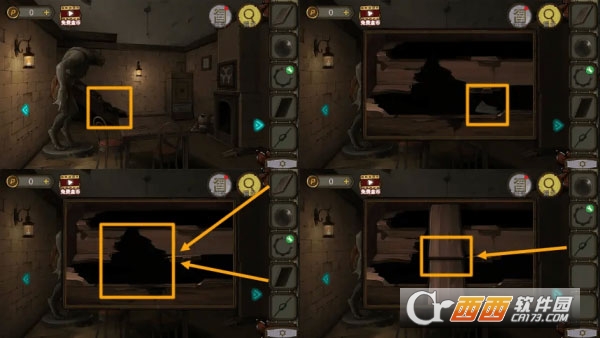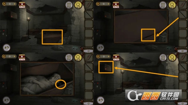 3、用【长棍子】撬开棺板,拿到【拼图块】。用【拼图块】启动拼图机关,解开拼图机关,拿到【钥匙】。