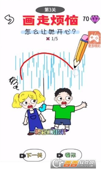 画走烦恼一款可以让你不再烦恼的游戏,在这里我们还可以帮助小女孩去掉所有的烦恼,每个关卡都是一个独立的问题,使用各种工具来进行绘画,快速解决问题来领取丰厚奖励。