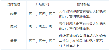 该活动为日常活动,每天都可以参加3次(周日3个场景全开,总共可以参与9次),每次参与需要消耗6点体力,英雄试炼总共有三个场景,不同场景的开放时间也不同,对阵怪物也不同。具体场景怪物开放时间如下表: