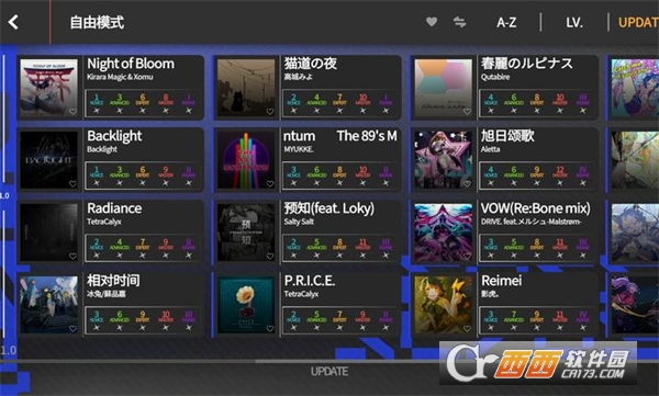 特色之一是无轨下落玩法,打破了传统音乐游戏固定轨道的限制。音符从各个方向出现,带来更灵活多变的操作体验,每次游玩都有新鲜感。