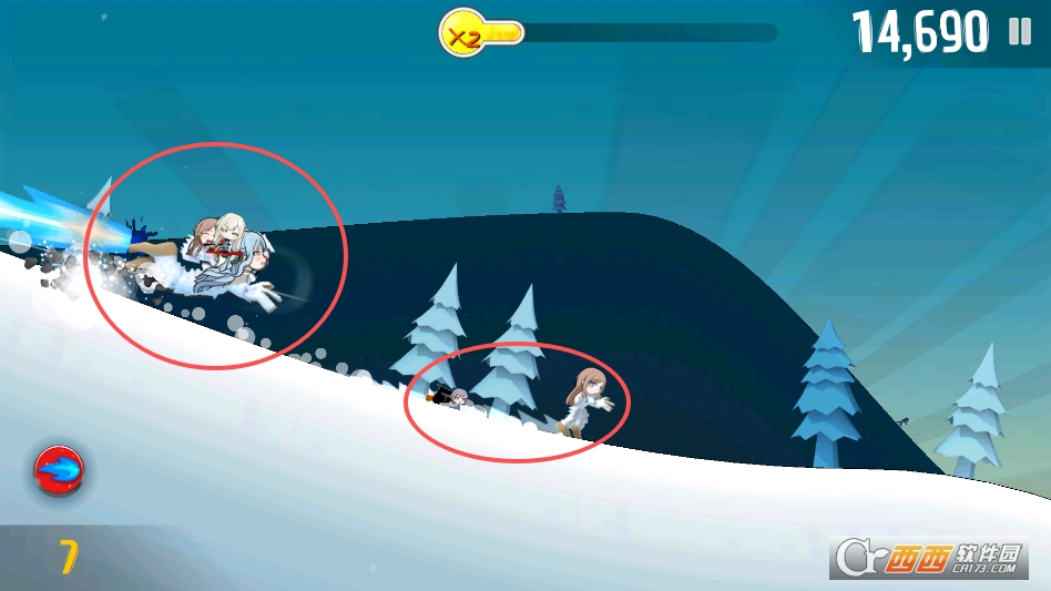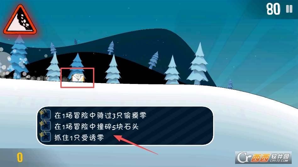 主打跑酷冒险玩法,玩家控制小睦在雪地上滑行。躲避各种障碍物,收集道具,尽可能滑得更远。