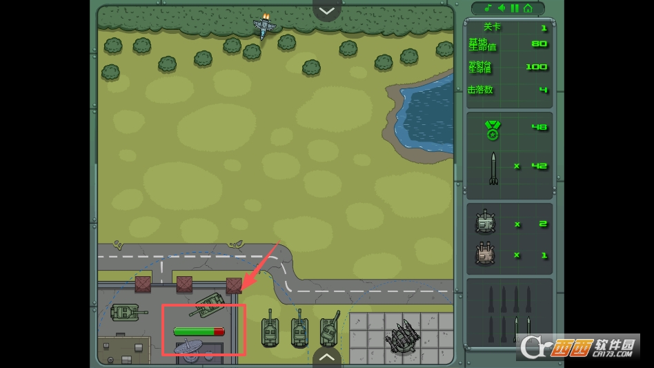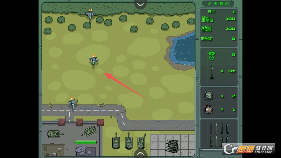 你的操作直接决定基地的存亡。通过移动鼠标瞄准来袭敌机,点击即可发射导弹,要眼疾手快,稍有迟疑,敌机就可能投下炸弹,对基地造成伤害。而且,游戏可不是简单的“射飞机”,随着关卡推进,敌机的飞行速度、攻击方式都会变化,有的敌机还会释放干扰弹,增加拦截难度,非常考验大家随机应变的能力。