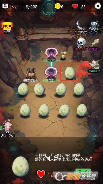 守个蛋手游测试版官方下载是一款像素画风的放置休闲策略塔防游戏,使用爱心进行砸蛋获取来自多元宇宙的高级英雄单位,可以洗练他的技能模组和上阵。选择关卡后就能自动展开攻击,通过击败敌人获取经验值升级,每次升级都能选择一项随机的强化效果,利用金币与钻石强化自己,击败最终boss就能获得胜利。
