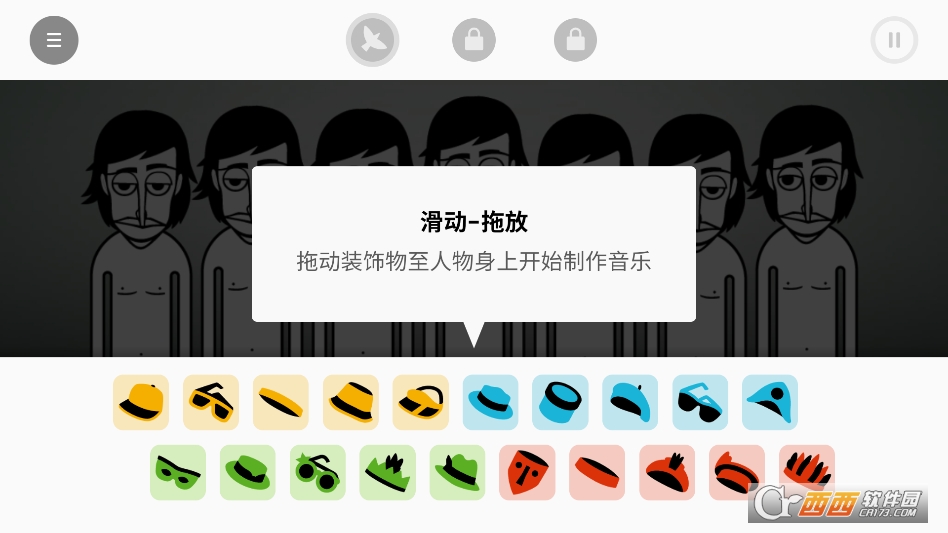 来到制作界面,选择任意装饰物拖动到人物身上即可发出音乐