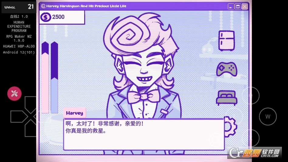 你可以给哈维吃东西保证他生存,也可以和哈维玩游戏提高情绪值
