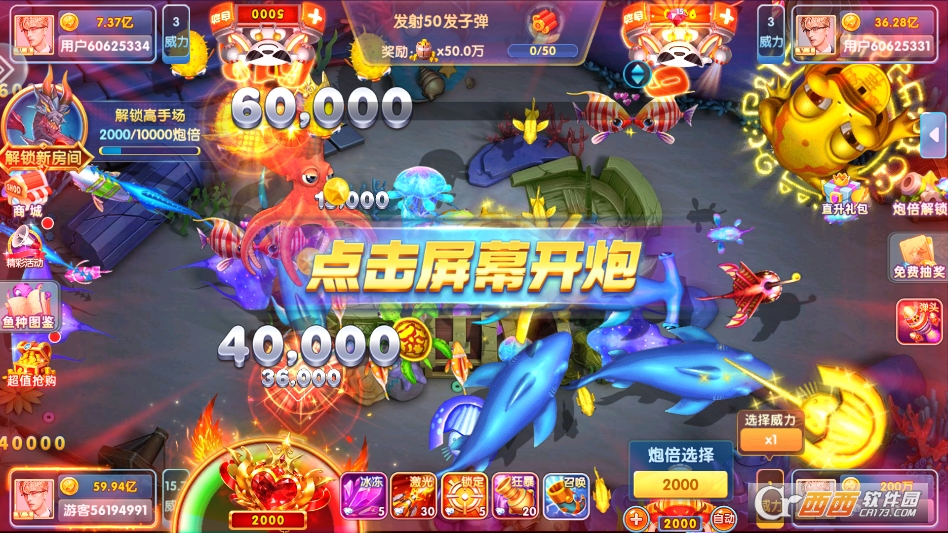 捕鱼玩法:包含多变鱼潮阵型,不同鱼群移动速度、聚集密度差异大,需玩家灵活调整射击角度与炮弹数量;设有BOSS挑战系统,从低阶的大章鱼到高阶深海首领,玩家要升级炮台威力、搭配技能击败BOSS,成功后可获大量金币与图鉴经验。