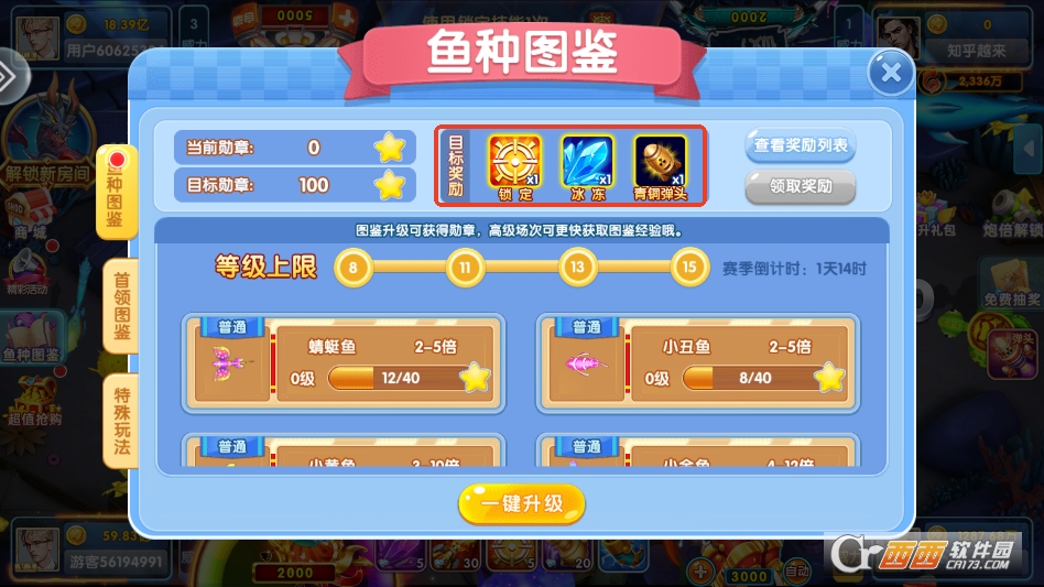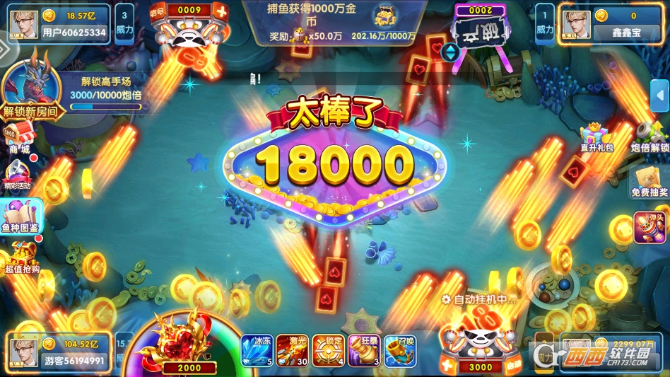 2,捕获高级鱼类获得金币奖励