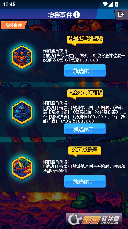 战斗冒险:在星球探索过程中,随时可能遭遇外星生物突袭、敌对势力拦截等危险情况,玩家需灵活操控船员展开战斗。战斗胜利不仅能获取大量经验,还可购买经验包助力船员快速升级,积累星币购买强力装备资源,持续强化船员属性,积极参与不同势力间的互动与战斗。