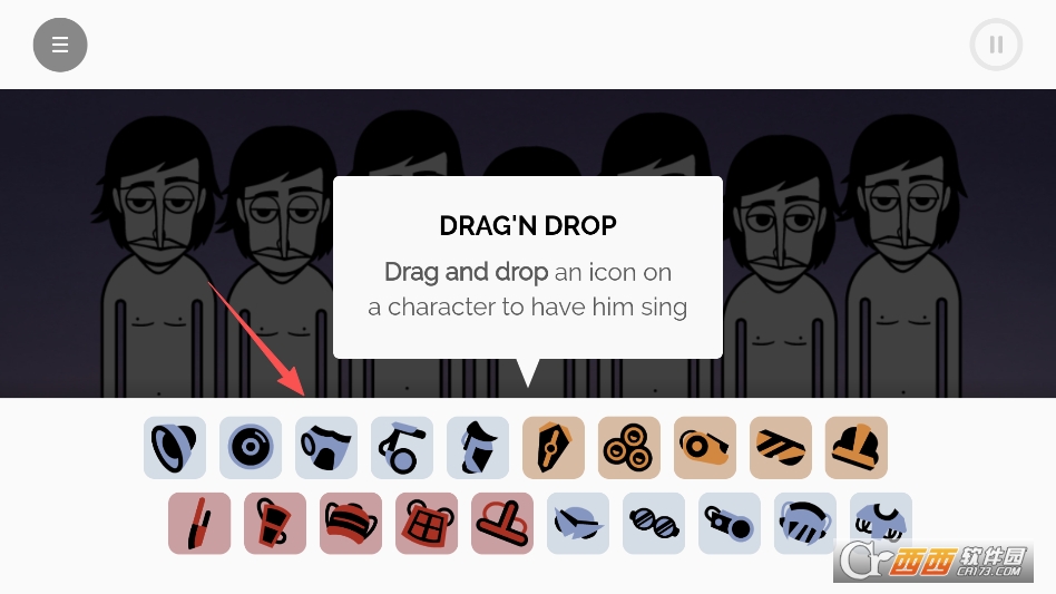 通过拖动下方装饰物到上方人物上即可播放旋律