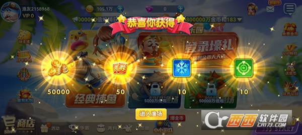 3、奖励丰厚实用,获得感强。捕获鱼类即可赢得大量元宝、钻石、道具奖励:普通鱼类掉落元宝,珍稀鱼类与Boss掉落钻石、高级道具;奖励可直接用于提升炮台等级、解锁技能,无需额外付费也能获取核心资源,奖励丰富度远超奖励稀缺的捕鱼手游。