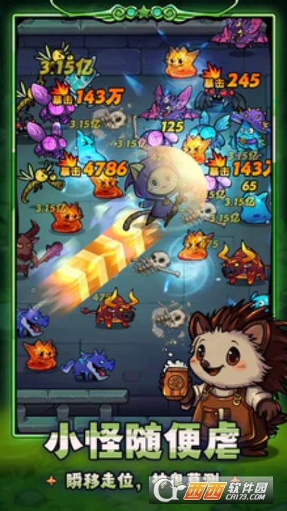 Roguelike割草玩法:游戏采用Roguelike机制,技能特效华丽,玩家在游戏中体验割草刷宝乐趣,有经典的十波闯关与地下城探索玩法,还融入生存挑战、限时吃豆、任务目标等,5大类关卡交替体验。在关卡中玩家通过走位躲避怪物攻击,选择合适技能消灭大量怪物,获取装备和道具 。