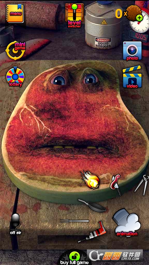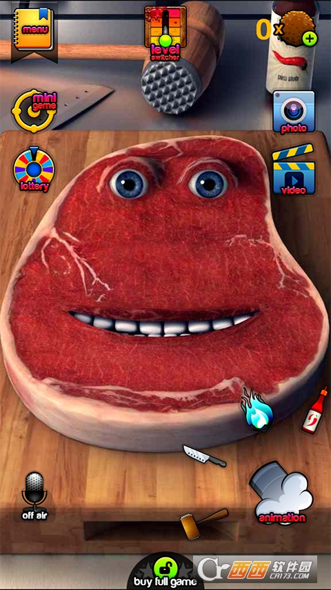 3、利用所选工具对查理(牛排)进行操作,例如用刀子切割或用煎锅烹饪。每次互动都会触发查理的不同反应,增添游戏的乐趣