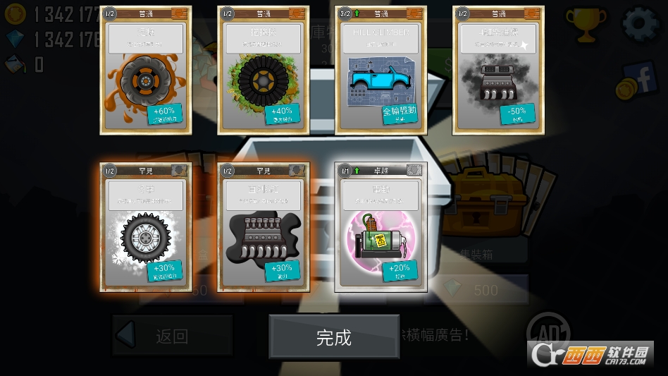 而且地图和赛车种类很丰富,不会觉得单调。游戏里有十几种不同的地形,从普通的山地到危险的火山、冰雪覆盖的极地,每种地形对赛车的要求都不一样;赛车也有很多类型,比如灵活的小轿车、耐撞的卡车、适合爬坡的越野车,有了无限资源,你可以把每种赛车都体验一遍,每种搭配都有新玩法,长期玩也不会腻。