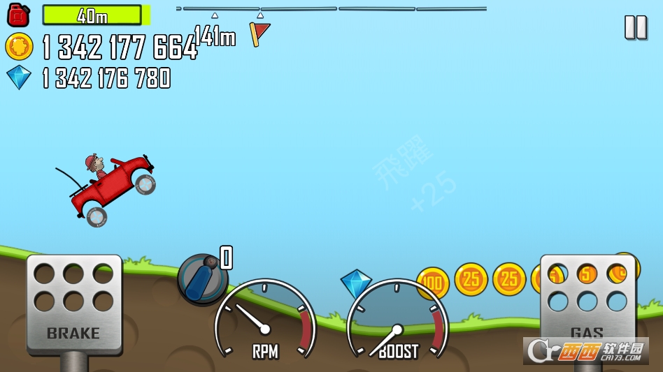 其次玩法虽然简单,但特别容易上瘾。控制赛车在高低起伏的地形上前进,有时候需要猛踩油门冲上坡,有时候要轻点刹车慢慢下坡,稍微不注意车就会翻,这种“刺激又有点紧张”的感觉很上头。每跑完一段距离,看到积分不断上涨,解锁新地图时的新鲜感,都能让人忍不住想“再玩一局”,不知不觉就能玩很久。