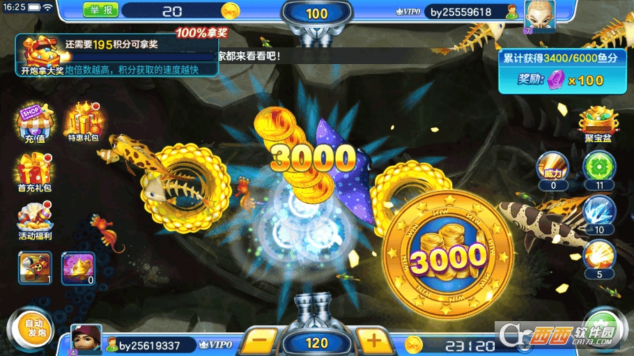 2、真人同屏对战:支持多人在线竞技,有200多种鱼类和20多种BOSS供玩家挑战。
