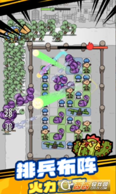 防御部署与资源获取:需将植物部署在围栏内,围栏中滚动的弹球触碰植物时会触发其专属攻击技能以打击僵尸;每抵御一波僵尸进攻,可获得阳光资源,用阳光能兑换新植物来扩充防御阵容。