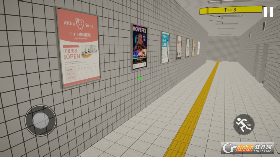 游戏场景设定在无尽延续的地铁站地下通道,氛围塑造得特别到位。昏暗的灯光、斑驳的墙壁,还有若有若无的背景音效,一进入游戏就能感受到压抑的恐怖氛围。玩家要从0号出口出发,一路探索通道,目标就是找到能逃离的“8号出口”,每一步前进都带着未知的紧张感。