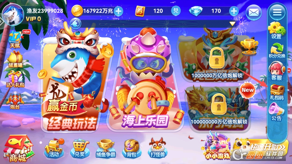 “万炮齐发模式,打鱼更爽快”是核心玩法之一。在“捕鱼狩猎季节”或完成特定任务后,能解锁万炮齐发模式,此时炮台倍率上限大幅提升,一次发射就能覆盖更大范围的鱼群。遇到超大分值的“海底boss鱼”时,开启万炮模式集中攻击,能快速将其捕获,获得的积分比普通模式多十几倍,特别有爽感。