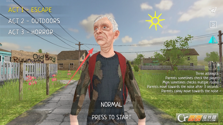 进入游戏可以看到,我们的主角小男孩变成了一个老男孩