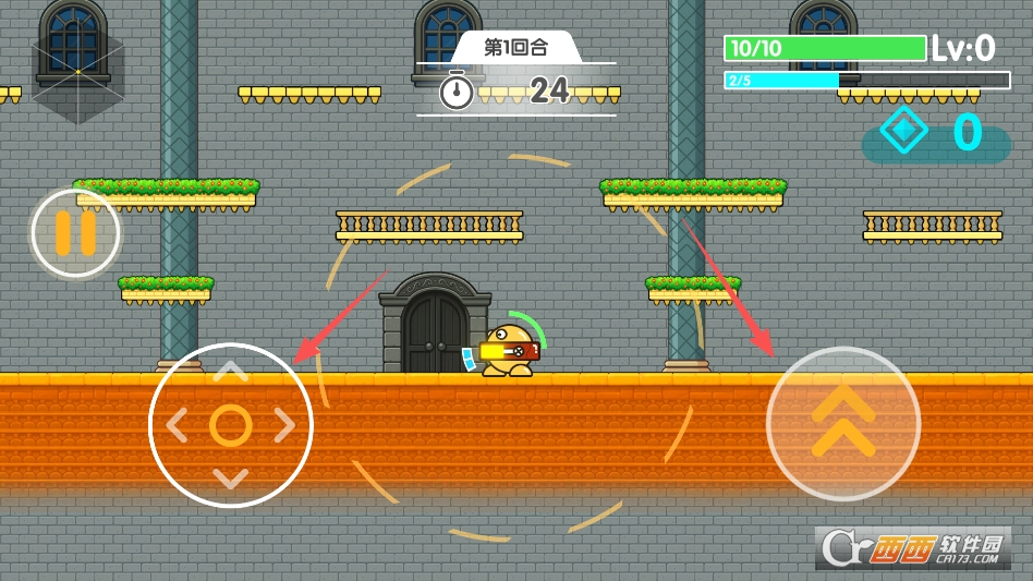左右两侧的虚拟按钮即可控制角色移动和跳跃