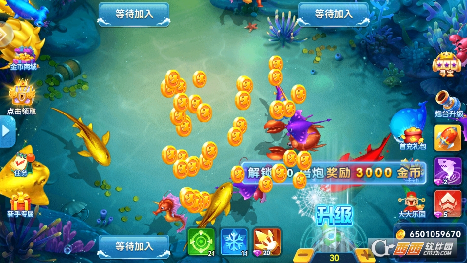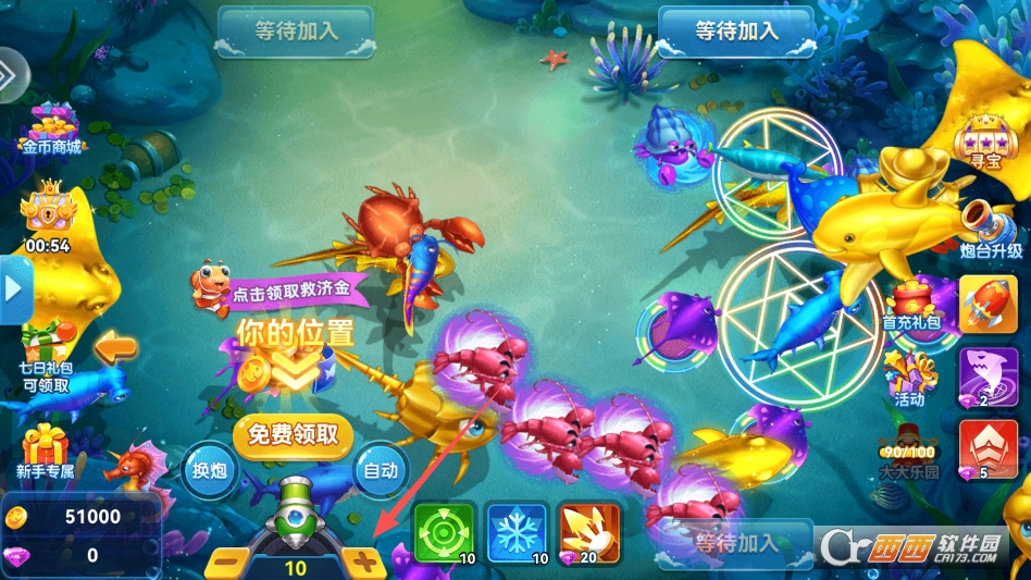 它里面有各种鱼群随时可抓捕,鱼群种类丰富还会随机出没。小到灵活的沙丁鱼群,大到珍稀的黄金鲨鱼,不同鱼群对应不同积分奖励,看到鱼群直接开炮就能捕,不用等固定刷新时间,随时都能体验抓鱼的快感,玩起来不会觉得无聊。