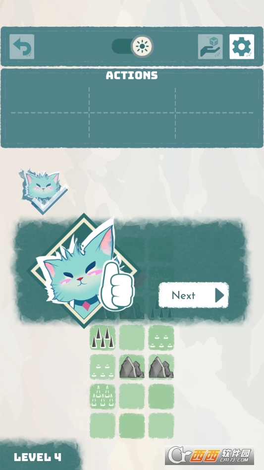 每个关卡都是独特的网格谜题,难度和设计各不相同。有的关卡要规划猫咪的移动路线,避开障碍物;有的要破解机关才能打开通道,每一步都得仔细琢磨。光靠自己想还不够,必须让猫咪们通力合作,比如让擅长推箱子的猫咪清理路障,让灵活的猫咪钻过小洞,少了任何一只都可能卡关。