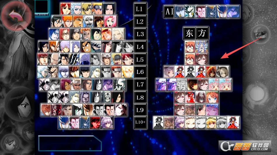 进入游戏选择任意模式,在选人关卡即可看到游戏中内置的东方主题的角色可供选择