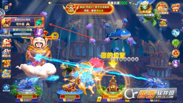1,进入游戏点击屏幕就能开火捕鱼