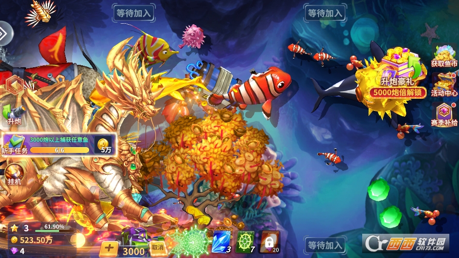 升级装备和技能是核心成长线。用捕鱼获得的金币升级炮台等级,解锁更高级的捕鱼工具,提高捕捉成功率。还能学习专属技能,比如范围攻击的炸弹,面对成群的鱼类时特别好用,让捕鱼效率越来越高。