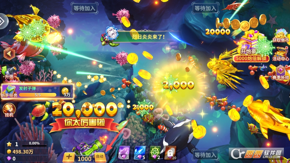 第一个亮点是炮台和特效更出众,视觉冲击力强。很多同类游戏的炮台样式单一,这款从普通渔网到激光炮有多种选择,升级后还能解锁专属特效。击中大鱼时的爆炸效果也更炫酷,比普通捕鱼游戏的画面更有吸引力。