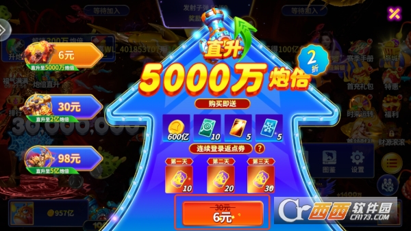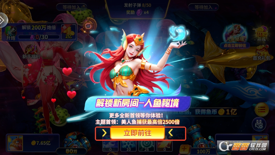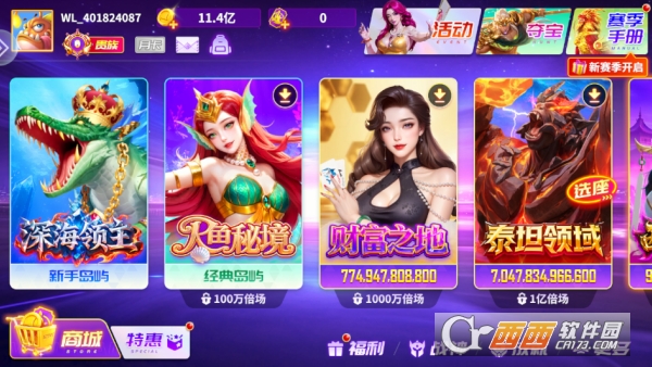 1,进入大厅可以选择多种渔场,高等级渔场需要特定的炮台倍率才能进入
