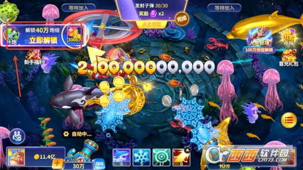 2,通过捕鱼获得金币与钻石奖励,用来升级炮台