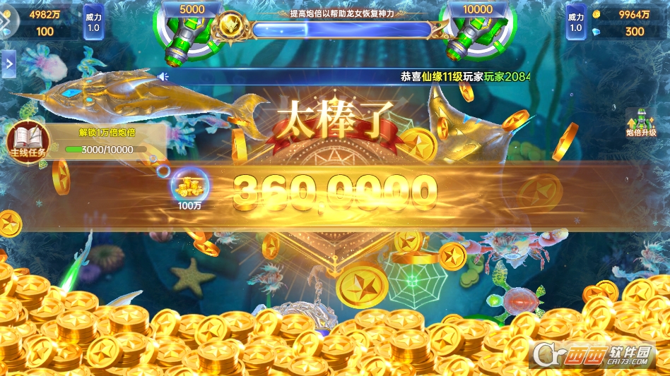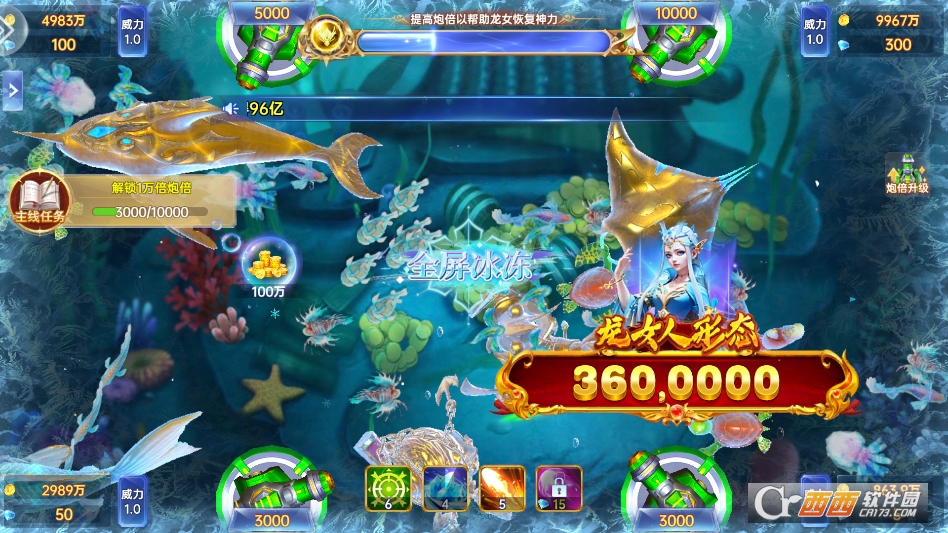 第二个主要玩法是“特色趣味挑战”,增加游戏新鲜感。捕鱼过程中会随机出现“彩金boss”,击败后能触发全屏爆金;炮台升级后还能解锁技能,激光炮能穿透多只鱼,冰冻炮能让鱼减速,这些玩法让捕鱼更有策略性,不是全靠运气。