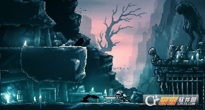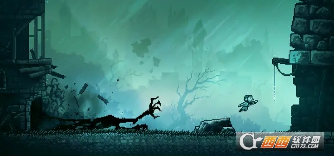 画面对像素世界进行阴冷色调、低沉音效与留白场景处理,很有感觉