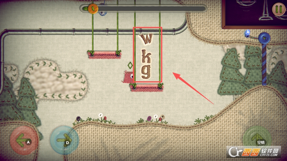 第一个核心玩法是“物理谜题闯关”,总共有45个不同难度的关卡。谜题全和物理规则有关,比如让乔治吃毛线球变重压机关,或者分裂成多个小面料按住不同按钮,有的关卡还要利用风力、平台倾斜这些元素,越往后越有挑战。