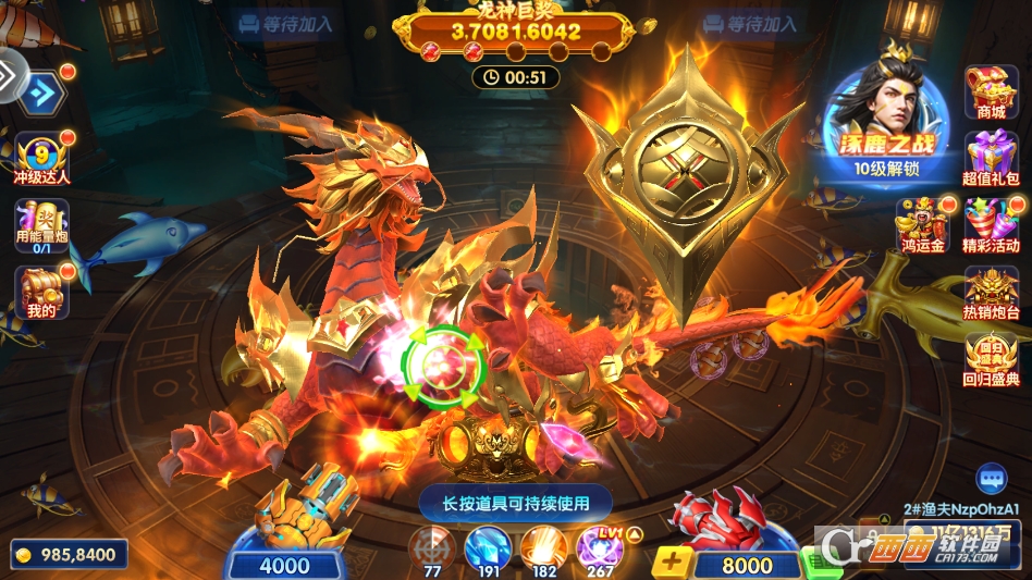 第二个主要玩法是“BOSS挑战”,超刺激。每个渔场每隔一段时间会刷新BOSS鱼,比如巨型鲸鱼、黄金鲨鱼,这些BOSS鱼血量厚,但捕到后会掉超多金币、高级炮台碎片和稀有技能道具。你可以单独挑战,也能和其他玩家组队围捕BOSS,组队捕到BOSS后奖励还能平分,互动感十足。