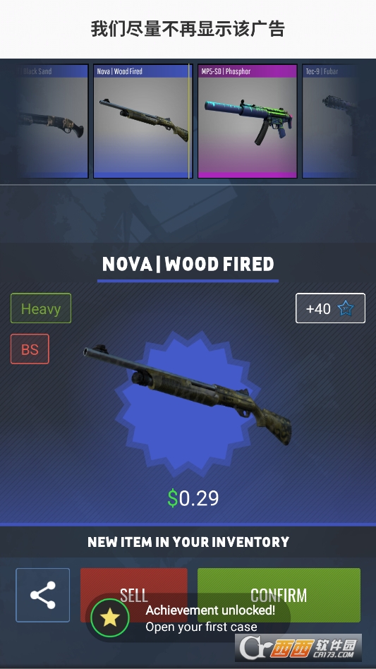 游戏界面设计得很简洁,功能一目了然。首页就是各种箱子的展示栏,没有多余的广告或杂乱按钮,想找特定箱子直接翻列表就行。开箱后会有清晰的道具展示界面,能看到开出饰品的稀有度和外观,不用费力辨认,信息很直观。