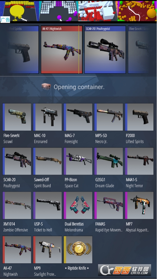 CS2开箱模拟器最新版就是专门模拟CS2游戏开箱环节的小游戏,玩起来特别有代入感。打开游戏就像真的在CS2里开箱子一样,从箱子外观到开箱动画都还原得很像,连开箱子时的紧张感都能体验到,不用启动大型客户端,手机上就能过开箱瘾。