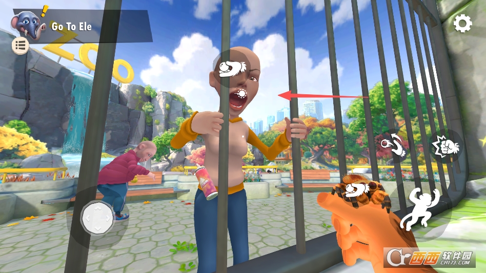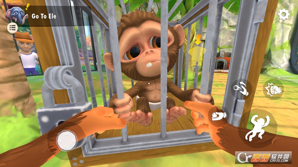 你可以主动和游客互动,玩法特别自由。看到游客递香蕉,赶紧跑过去抢走,能获得游戏里的奖励;要是遇到嘲笑、挑衅的游客,也不用忍着,能冲上去“反击”,比如抢走他们的小道具,或者做个鬼脸把他们逗走,整个过程像真的在动物园里当猴子一样,特别解压。