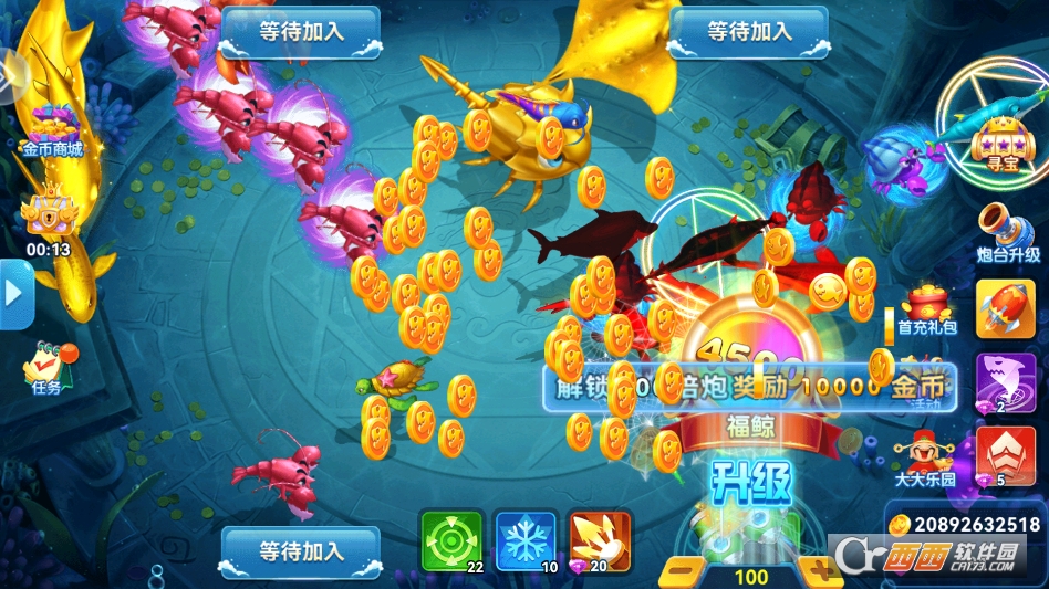 加入竞技场后,系统会根据捕鱼分值实时排名,排名靠前的能拿金币、道具奖励,还有公会战队赛,组队挑战大型Boss,分工配合攻击弱点,获胜后整个公会都有奖励,竞技性和社交性都拉满。