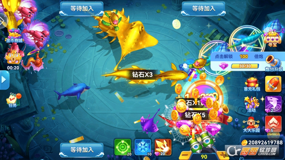 渔场定时刷新不同Boss,有的有防御技能,需要用“锁定”技能精准攻击;有的移动快,得开“冰封”冻住再打。技能不用氪金买,打渔过程中能随机获得,配合Boss刷新节奏使用,收益翻倍。