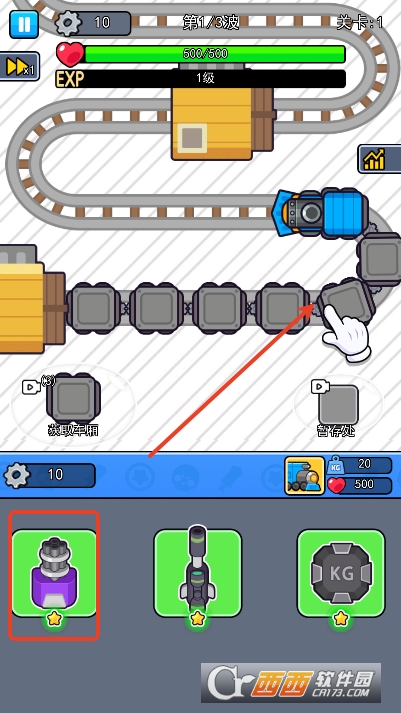 1,进入游戏后通过拖动将炮台安装在火车上