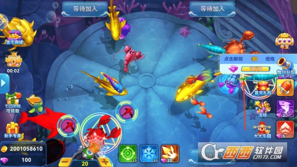 1,进入大厅可以选择多个渔场,高等级渔场有炮台倍率限制