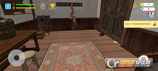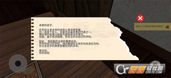 3、来到游戏内我们根据左下角的提示来观察日志和拿走钱袋