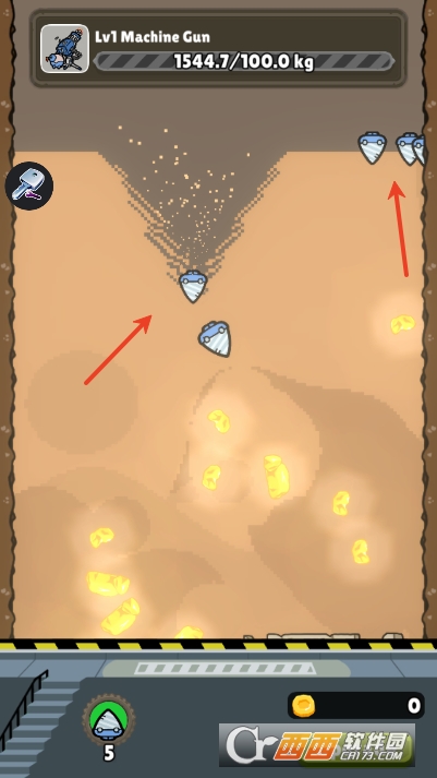 弹射矿工手游安卓版是一款非常有意思的休闲模拟游戏,玩家将操控画风Q萌的钻头小人,通过将钻头小人丢向空中进行弹射,通过反弹进入土地进行挖掘,获取金币奖励,通过不断累积金币数量还能解锁机枪炮台,无人机运输等辅助道具,使用金币升级挖掘速度,挖掘时间与血量,不断向下探索。
