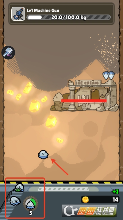 资源循环与团队升级:挖掘获取的矿石可兑换金币,金币可用于雇佣新矿工、升级现有矿工能力,还能解锁更先进的采矿工具(如炸弹、机枪类设备),形成“采矿 - 获资源 - 强化 - 高效采矿”的良性循环。