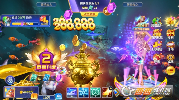 联机功能更让乐趣翻倍:支持实时匹配全球玩家,或邀请微信、QQ 好友组队开黑,多人围猎黄金鲸鱼、变异龙虾等高分BOSS时,能共享锁定、冰冻技能,配合语音交流调整攻击策略,团队击杀奖励还能翻倍;高倍场的 “皇冠之战” 更开启联机排行榜,与其他玩家实时比拼捕鱼收益,胜负间的紧张感远超单机模式,既保留街机精髓,又新增联机社交的趣味。